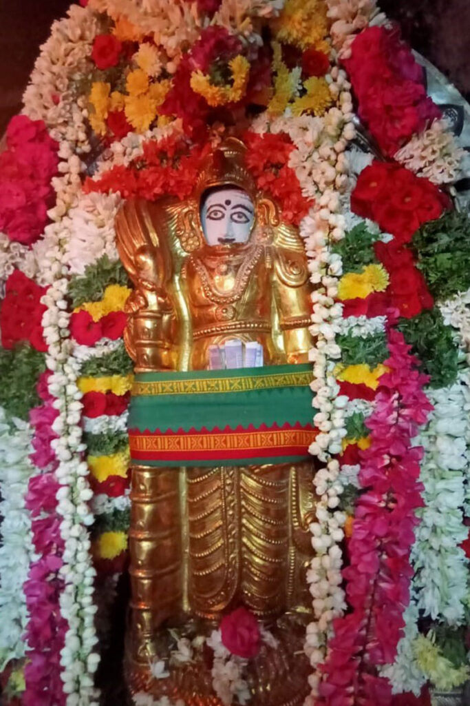In earlier days, the place was a forest of Kadamba trees. In legend, a trader on his way had to stay here at a night. About midnight, he saw a fire ball splitting light, in the midst of which was a Shivalinga being worshipped by Devas and Rishis. The trader informed the Chola king of what he saw. The Chola king rushed to the spot, along with Kulasekhara Pandiyan, who was his guest then. They saw an old man walking there with a red sugarcane as his walking stick. He showed the king the place where the Shivalinga was hiding and disappeared in the form of a fire ball. When they looked in an easterly direction where the old man disappeared, they saw Lord Dhandayuthapani on a hill. In ecstasy, the kings built a temple for Lord Ekambareswara and a temple for Lord Dhandayuthapani, according to the history of the place.