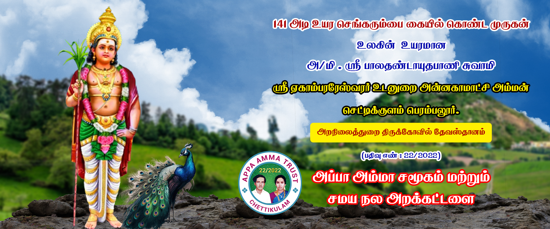New commercial buildings, repair of vehicles plying the Thiruveedi, construction of new vehicles, A new road leading to the hill, a parking lot, annadhanam hall, Thirumudi Nerthi loan complex, accommodation, wedding hall construction, construction of a deep pipe from the Pancha river and provision of drinking water over the hill, consecration of the Appa Amma Social and Relegious Welfare Trust and handing it over to the Hindu Endowments Department of the Government of Tamil Nadu for future welfare, We would like to inform you that the names of the people who donate Rs. 10000/- from the public will be engraved as an inscription for the public to see at the Appa Amma Social and Relegious Welfare Trust office. The donation of this group will be received as a donation from the public after getting the permission of the Government of Tamil Nadu.